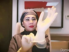 • A nurse in medical gloves does handjob